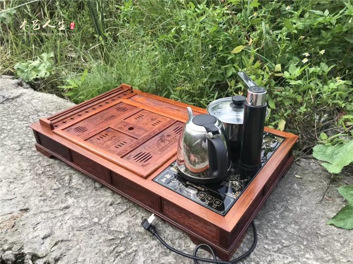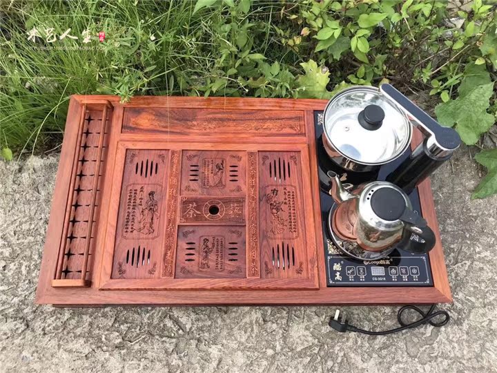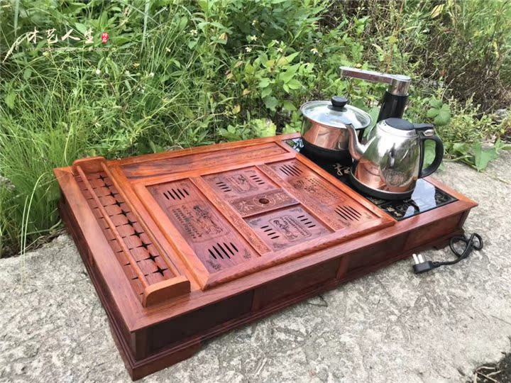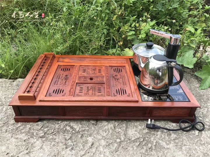 Myanmar flower pear wood tea plate solid wood tea tray full Kung fu tea sea red wood tea stand with cup frame