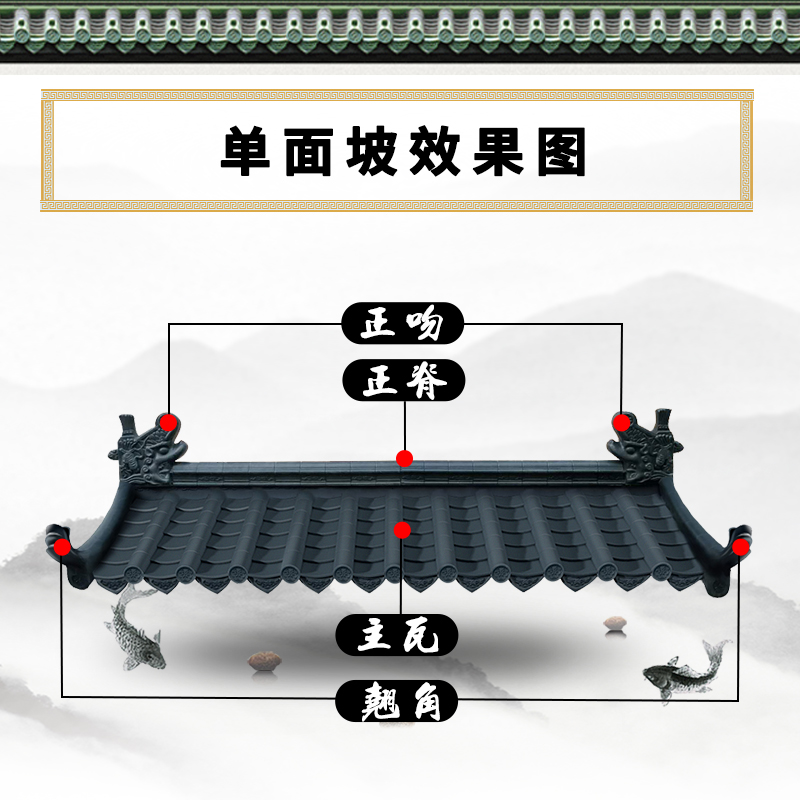 Antique tile resin tile integrated eaves decoration plastic tile ancient chinese door tile wall tile roof green tile