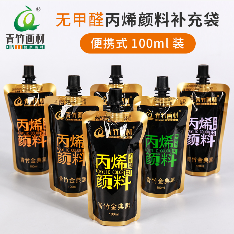 Green Bamboo Propylene Pigment Supplement Package 100ml Children No Formaldehyde Squeeze Style Supplement Bag Dress Gold Classic Black Wall Painted Graffiti Painting Stone Clothes Shoes Diy Hand-painted Waterproof Sunburn