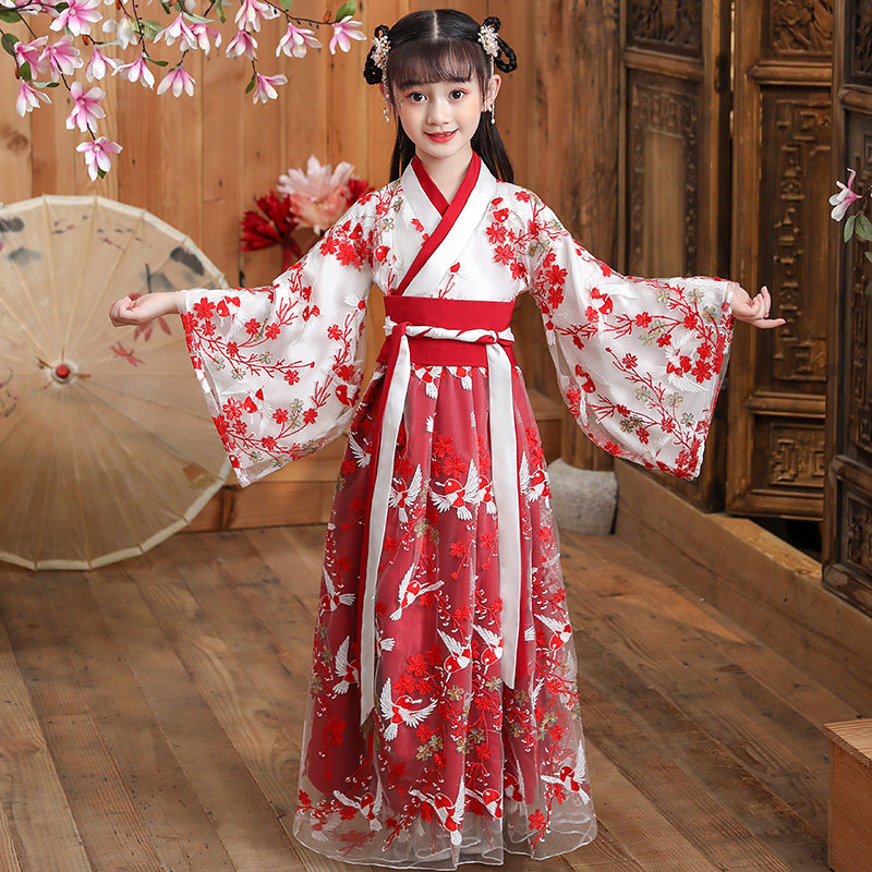 Hanfu Girl Child Spring and Autumn Children's Tang Costume Ancient Wind Girl Super Fairy male Chinese Wind Liandress Skirt Jacket Gooey Dress summer-Taobao
