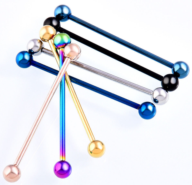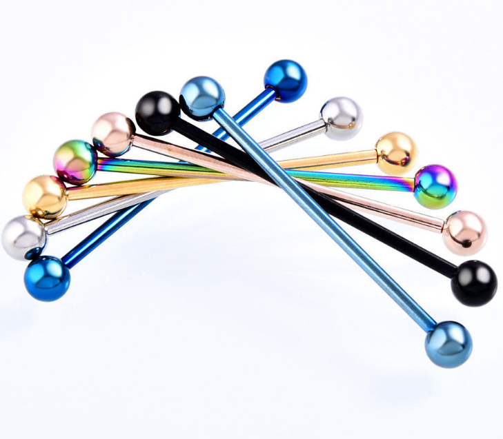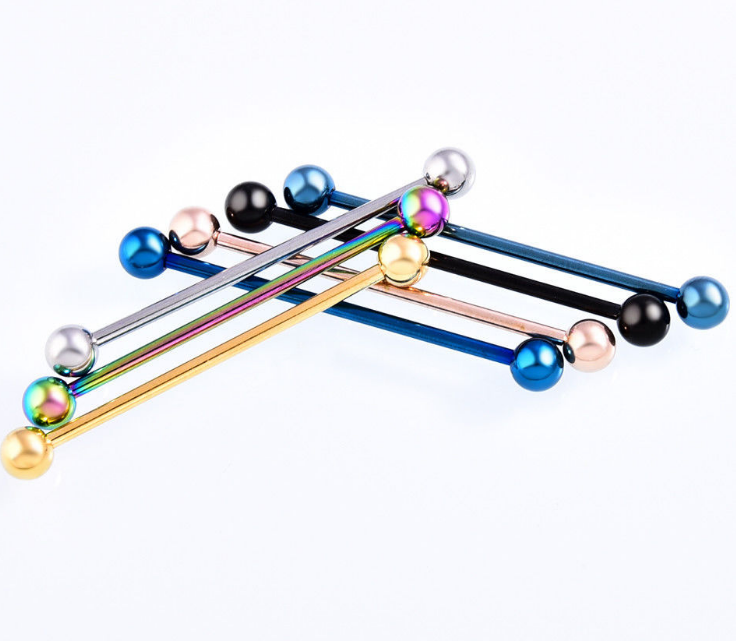 Electroplating does not fade industrial barbell stainless steel ear bridge hypoallergenic double ear hole ear bone nail