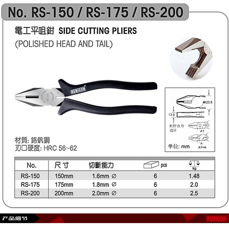 Japanese Robin Hood electrician pliers flat nose pliers wire pliers hand pliers RS-150 175 200 strong pliers