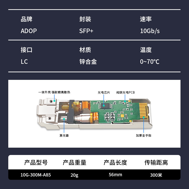 ADOP Optical Module Industrial-grade Ten MMSFP SFP-10G-LR SR compatible with Rujie Huawei 3 as Cisco Switch Fiber Module