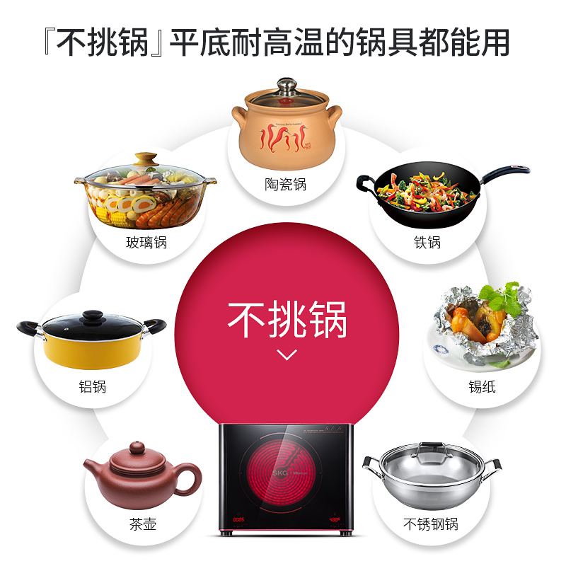SKG black crystal cooker induction cooker special offer home smart new battery cooker light wave cooker desktop stir-fry