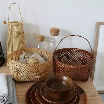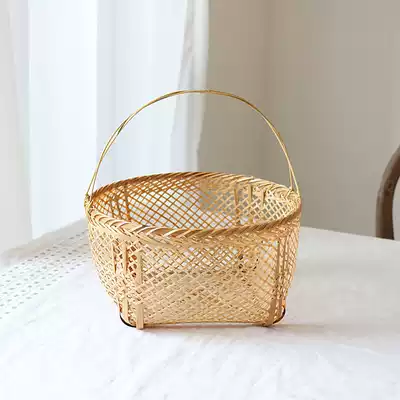 Japan original simple handmade bamboo woven blue portable bamboo vegetable blue fruit blue storage bamboo basket hand woven bamboo products