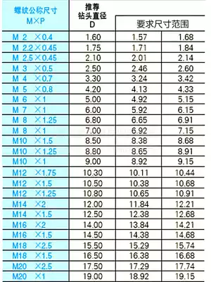 M2 * 0 4M2 5*0 45M3*0 5M4*0 7M5*0 8M6*1 0M8*1 25M10*1 5M12*1 7
