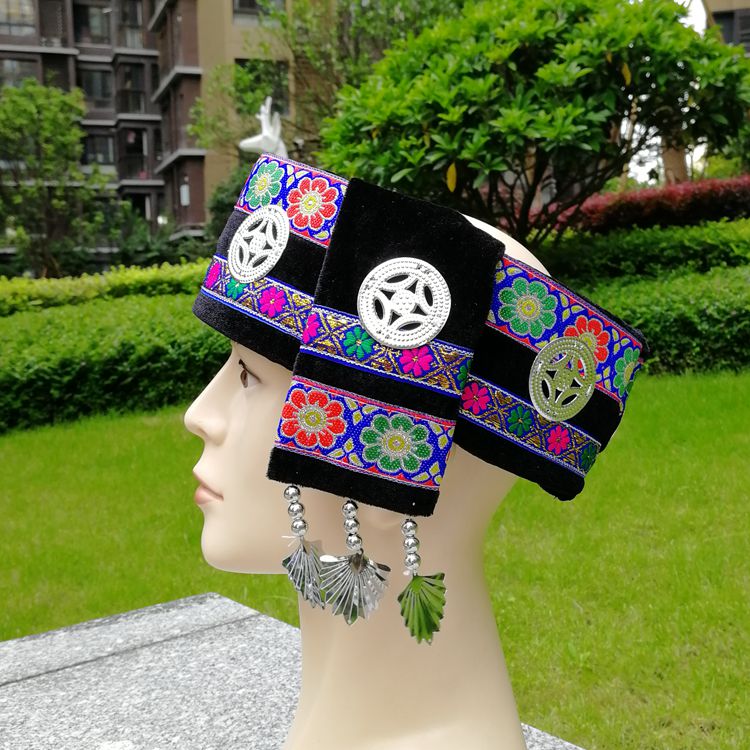 Yunnan, Guizhou, Guangxi, and Guangxi ethnic minorities, Miao, silver ornaments, cloth hats, cucurbit silk dance performances, headgear, Dong and Miao nationalities, Yao