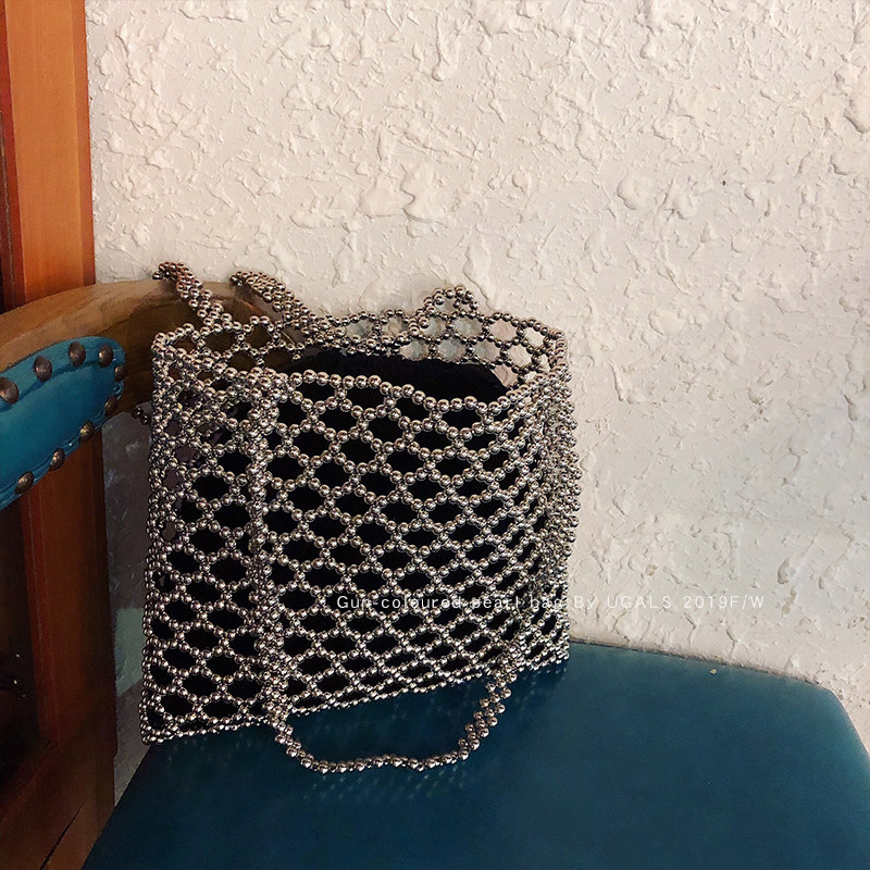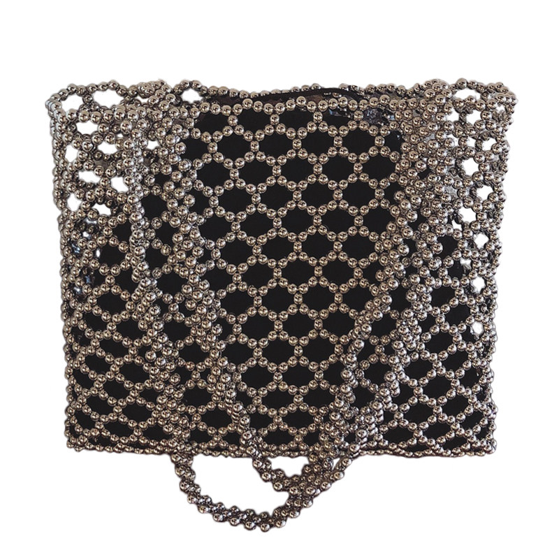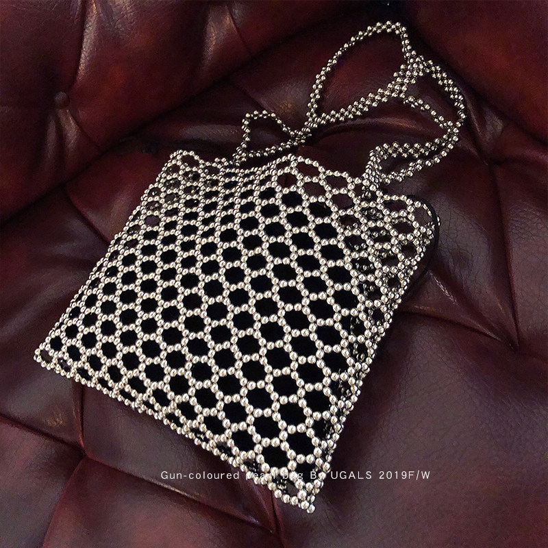 UGALS Retro Heavy Metal Hand Woven Hollowed-out Crystal Beads Pearls Bag Bag Single Shoulder Carry-on Satchel Bag