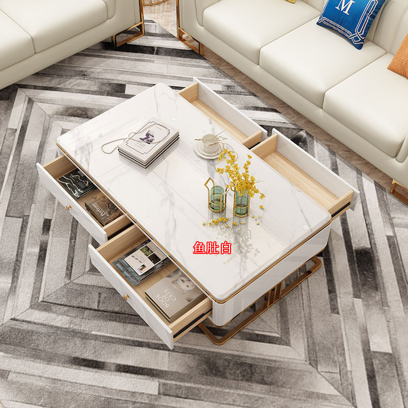 Light luxury marble black rectangular coffee table TV cabinet combination Nordic postmodern minimalist living room slate coffee table