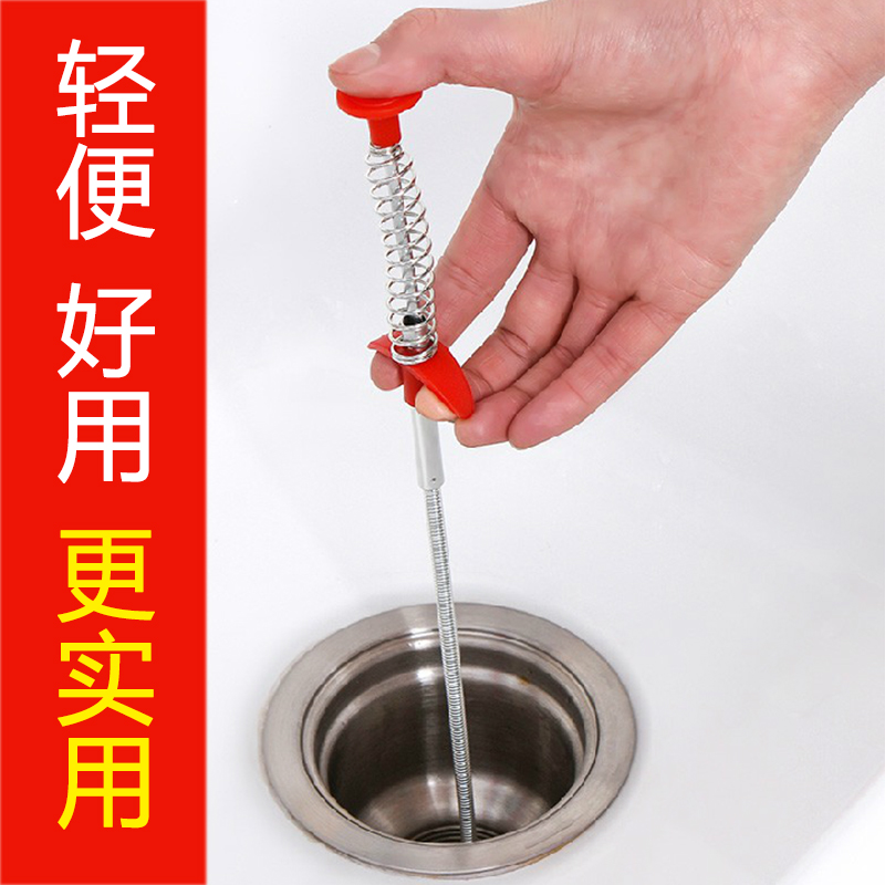Extended pipe loop household steel wire spring hair hook kitchen through sewerage pipe hair cleaner