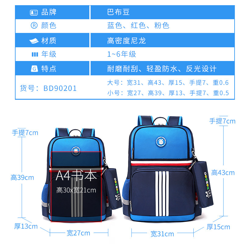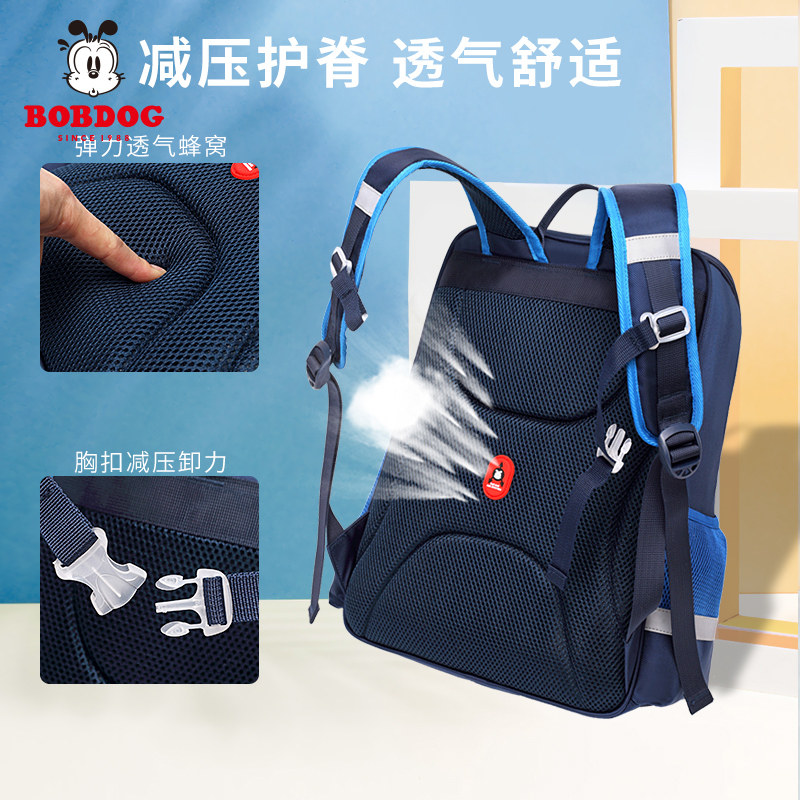 Bob Dou schoolbag primary school boys 1-3 grades 6-12 years old backpack female burden reduction ultra-light spine protection children