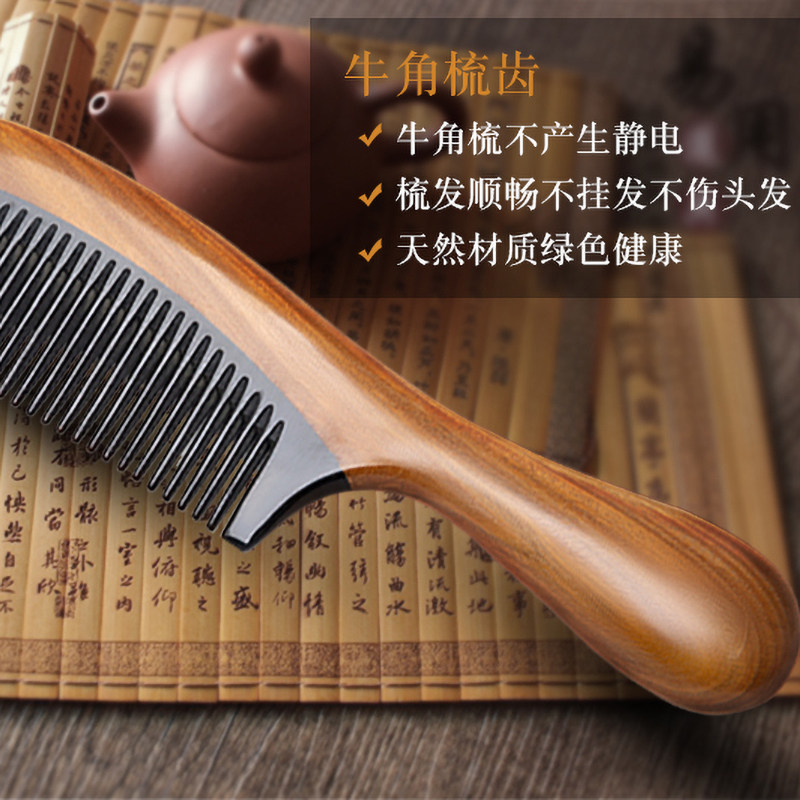 Green sandalwood natural horn comb Non-static household handmade sandalwood buffalo horn comb for men and women massage scalp