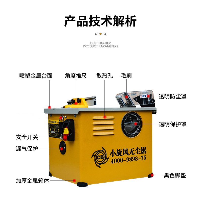 Qingdao dust bully small cyclone dust-free saw wood worker multi-functional small decoration push table saw Solid wood floor cutting dust-free saw