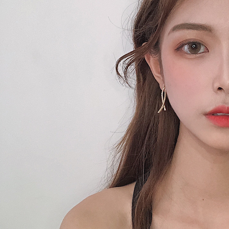 ins lukewarm wind extremely simple and inlaid drilling superior earrings female Korean minimalist temperament arc design ear pin R869