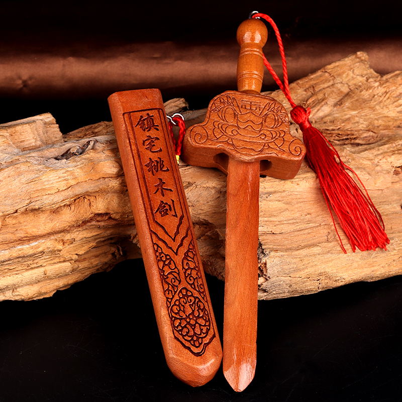Ou Shengying Feicheng peach wood eight sword pendant with seven-star sword wood carving carving craft gift decoration small large