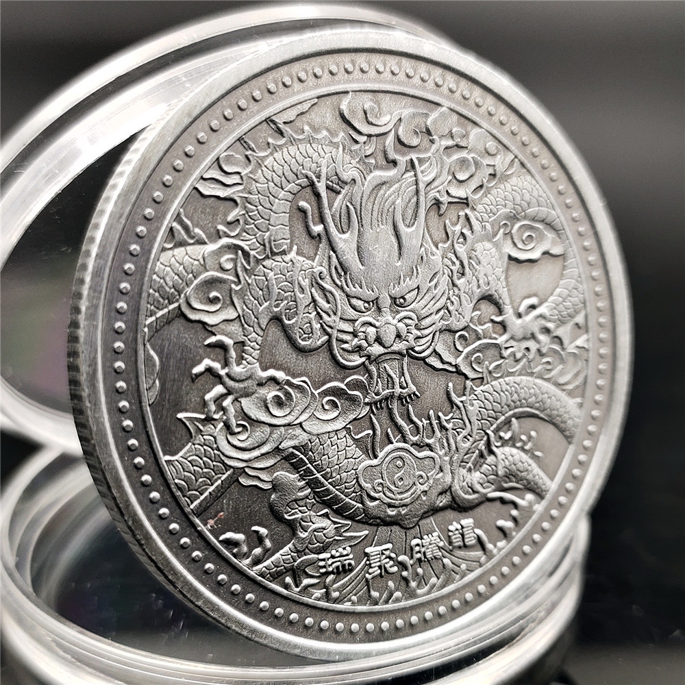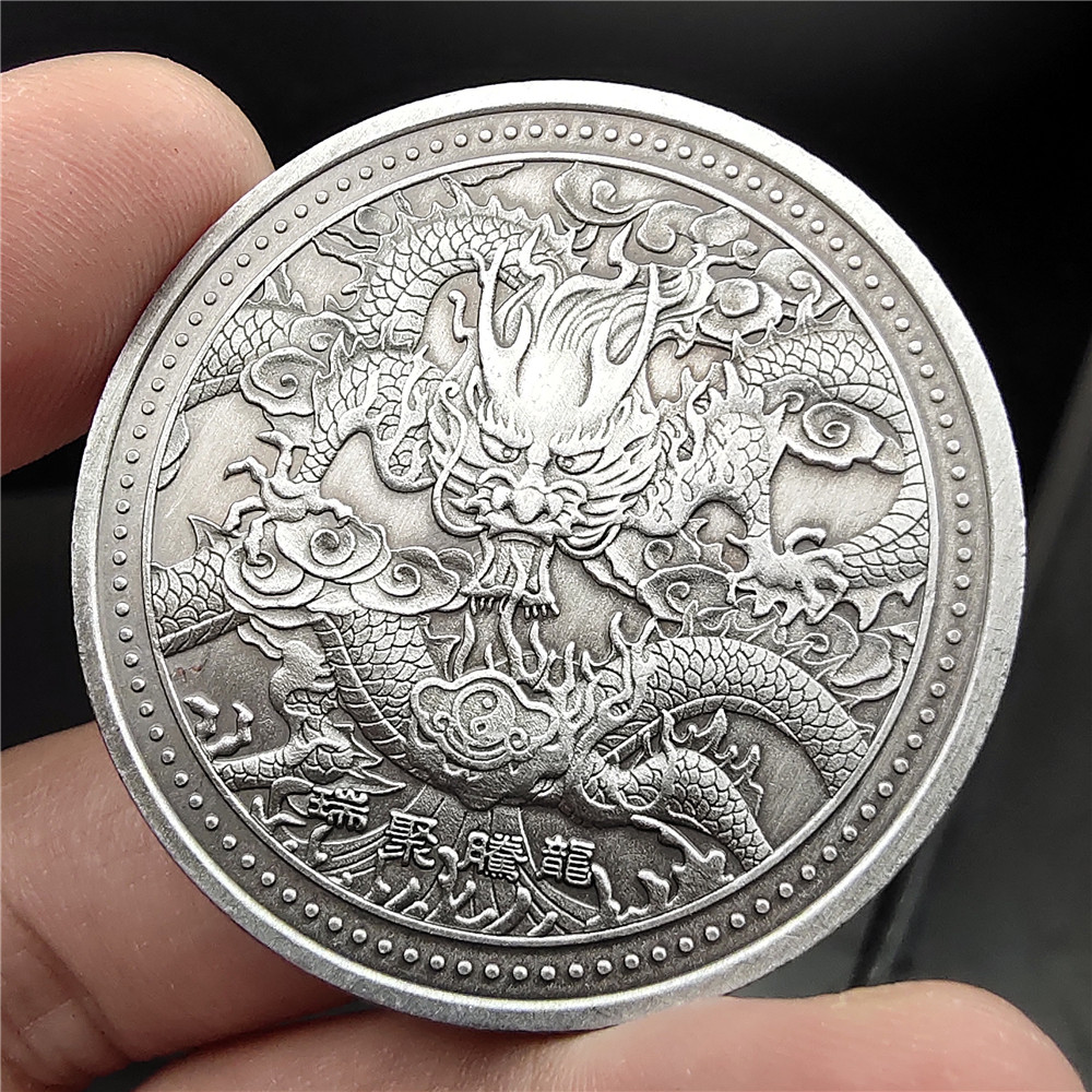 Retro Silver Dragon Totem Memorial Coin Long Tengru Lulu Coin