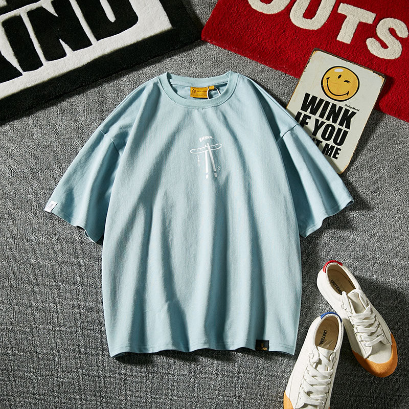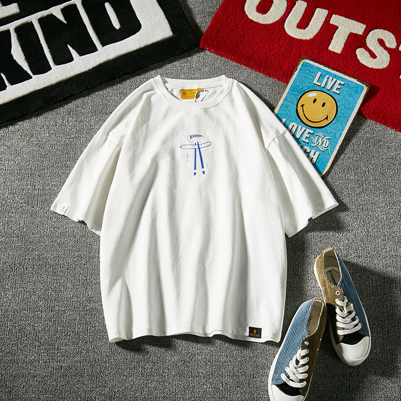 "Hot Dogs Bar" Summer Days Department trendy men's printed short sleeves T-shirts Korean version casual lovers loose blouses