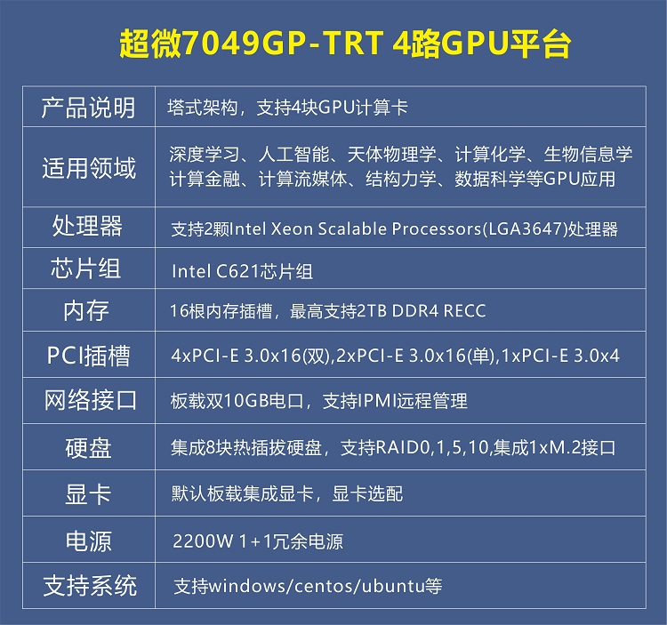 Micro 7049GP-TRT LGA3647 deep learning 4-way four-card GPU workstation