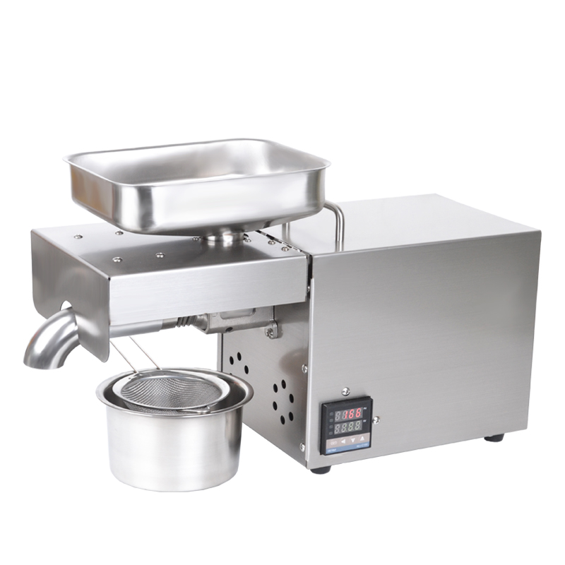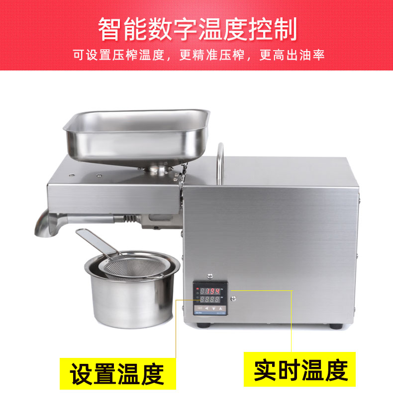 Beautiful stainless steel squeezer fully automatic medium and small hot and cold double-pressed commercial oil press X1 temperature-controlled version