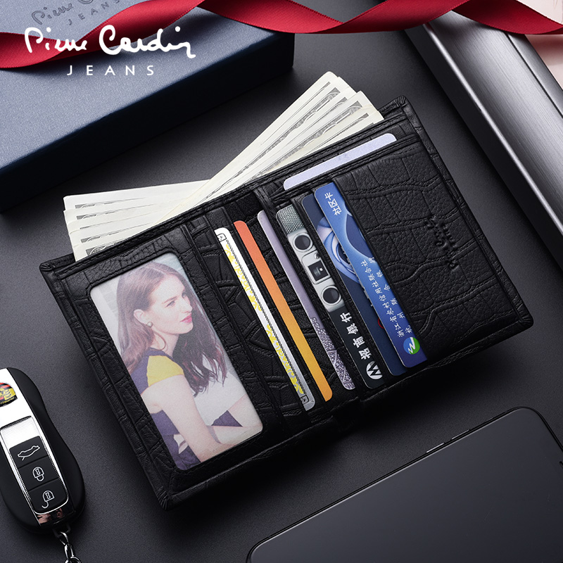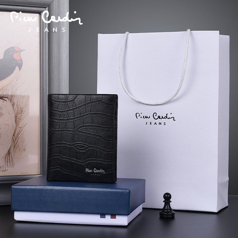 Pierre Cardin wallet men's short crocodile pattern pure soft leather high-end new trendy brand money wallet