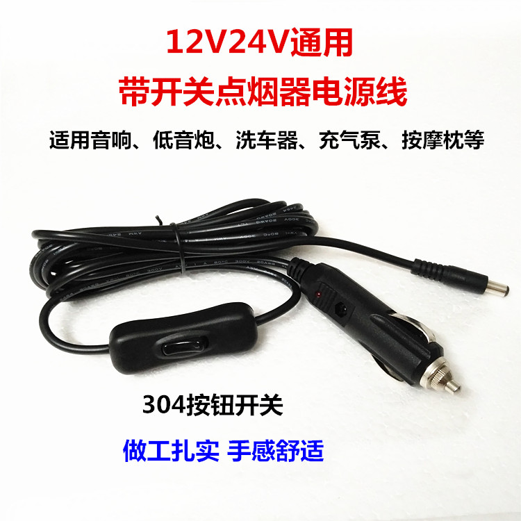 Car subwoofer cigarette lighter switch power cord 3M car audio car washer DC plug power cord