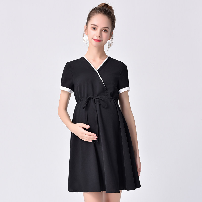Pregnancy Woman dress in summer dress Long version Business tooling Interview pregnant woman Ocean dress Female Summer Pregnancy Short Sleeve Professional Blouse