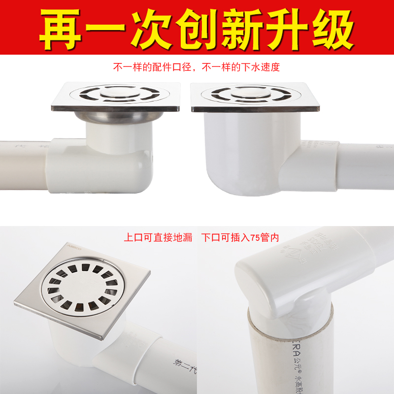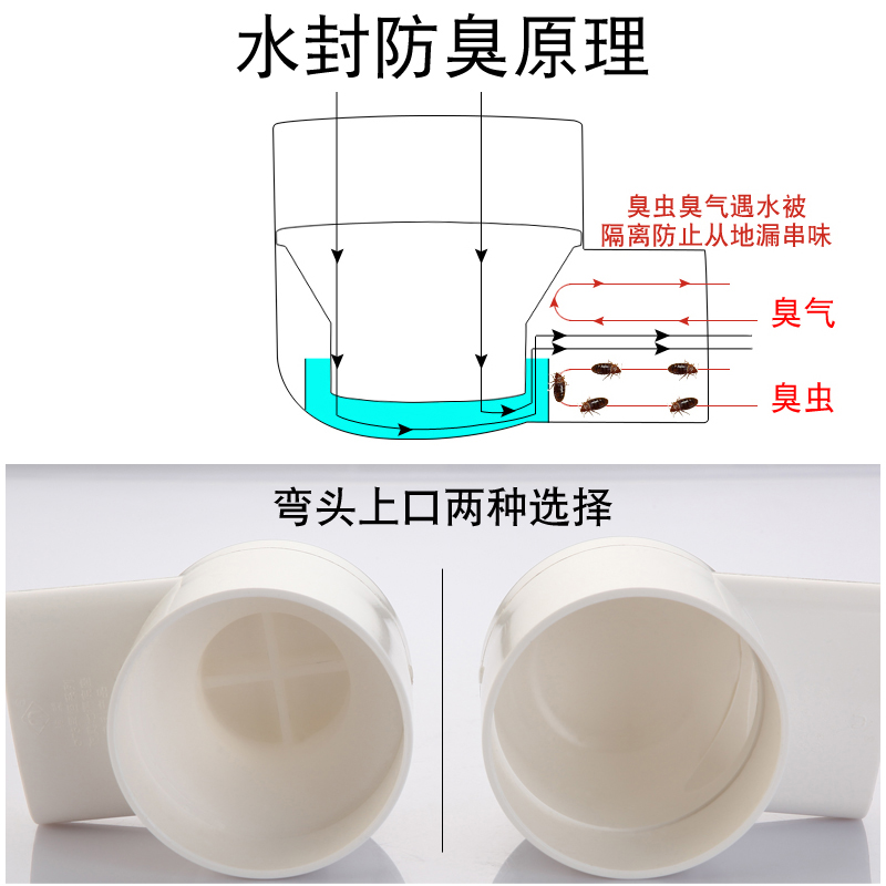 75 pipe floor drain shifter Bathroom balcony flat pipe three-way direct elbow 50PVC sewer pipe displacement accessories