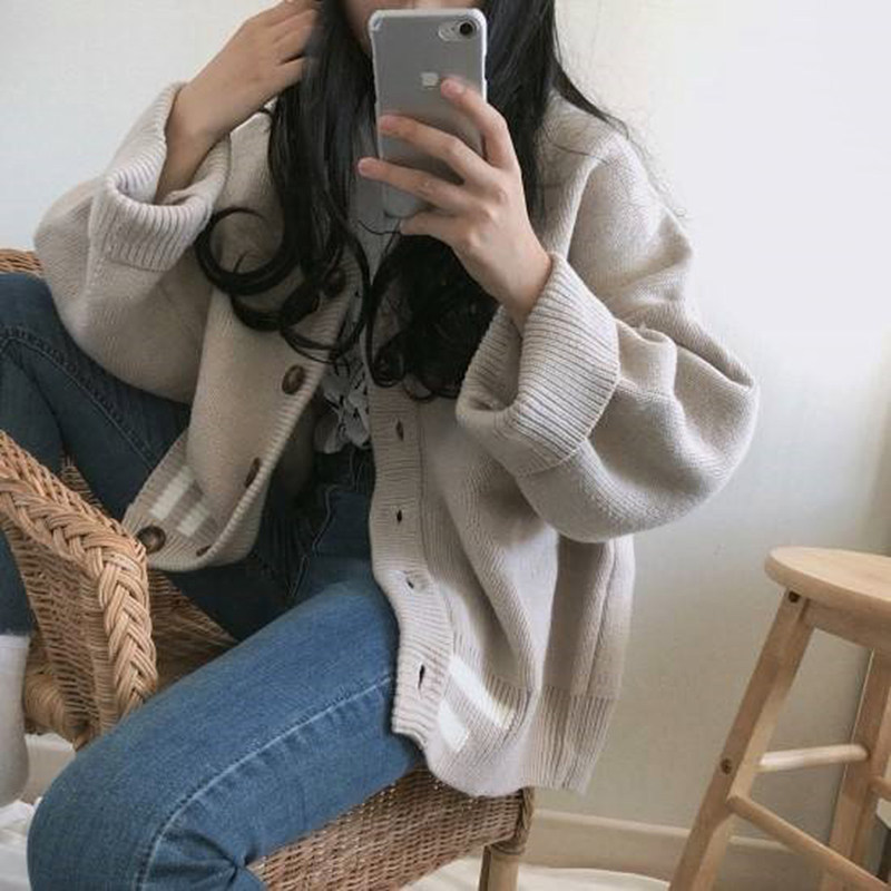2023 Autumn Clothing New Grey Academy Wind Knit Cardiovert Loose LAZY WIND SWEATER COAT EXTERNAL HITCH Thickening-Taobao