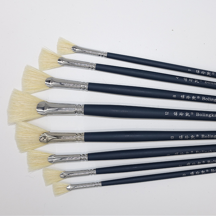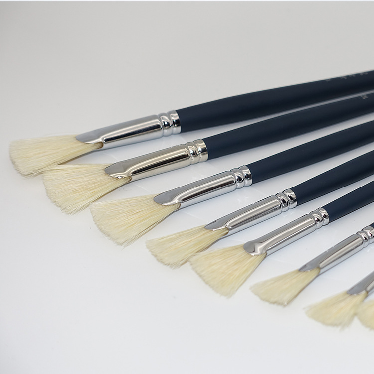 Bristle oil painting pen set Wooden fan-shaped children's brush Beginner Watercolor gouache acrylic paint drawing board brush