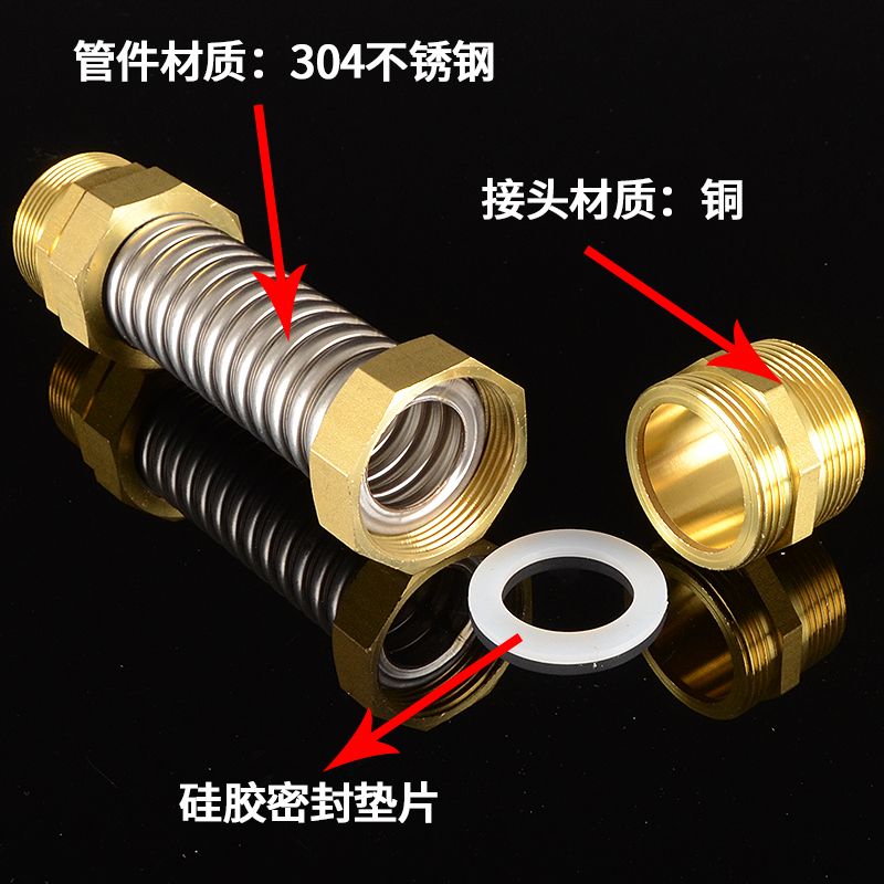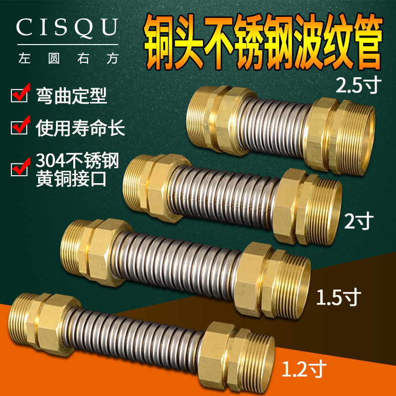 304 stainless steel central air conditioning bellows copper head metal water inlet hose DN32 40 50 65 fan coil