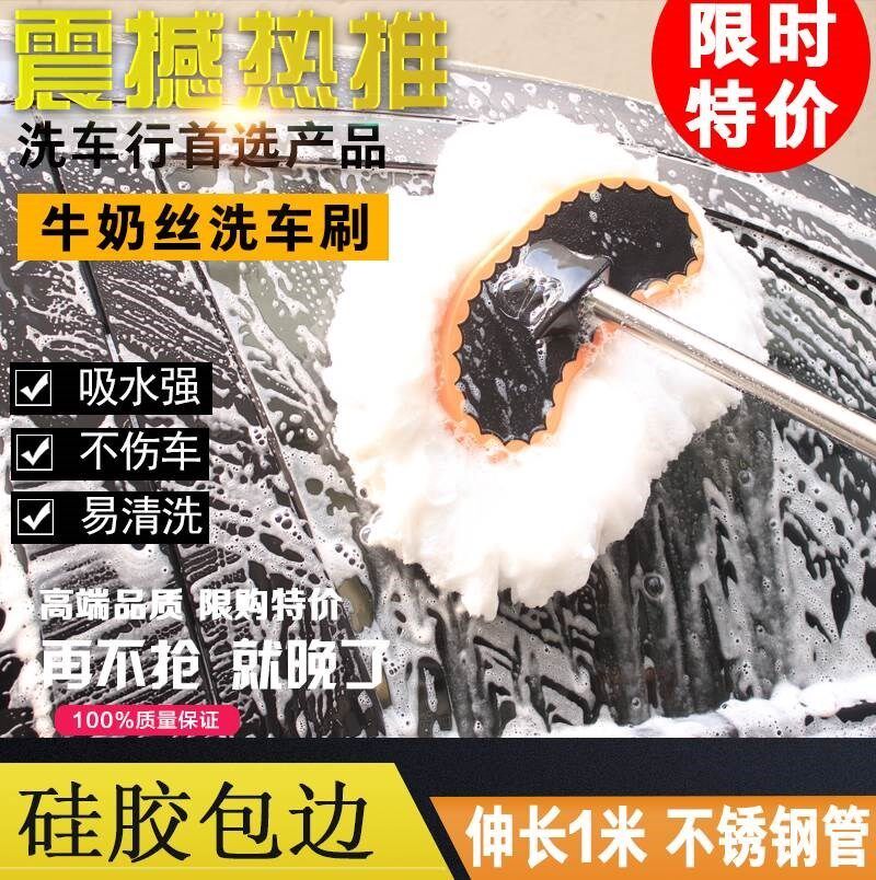 Car wash tool mop brush soft hair dust removal vehicle telescopic graver mop long handle clean milk silk foam brush handle