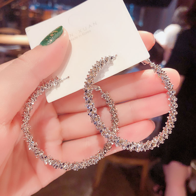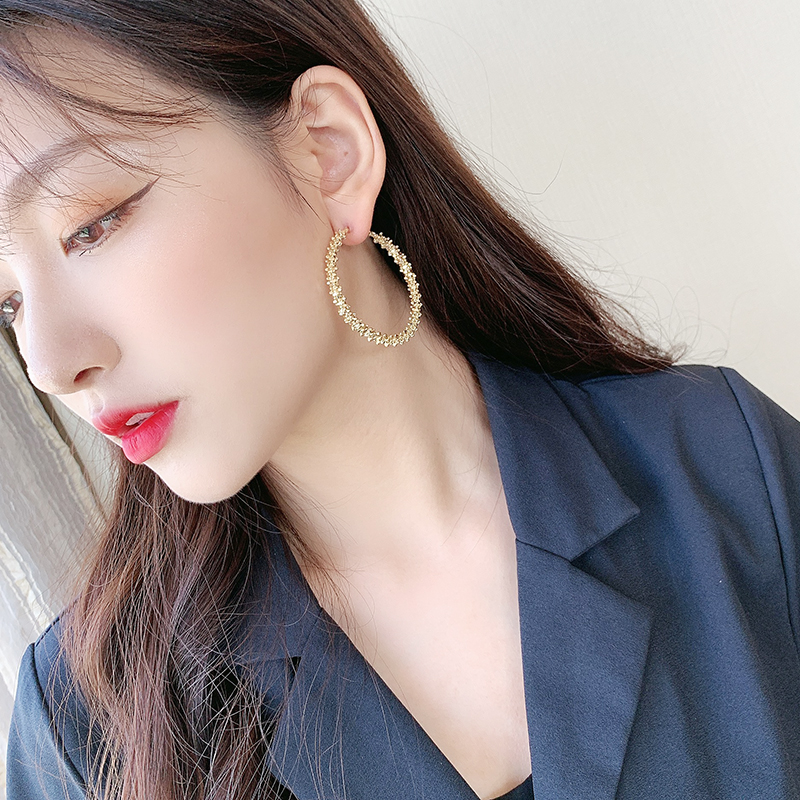 Japanese and Korean personality exaggerated earrings super fairy fashion metal large circle trend s925 silver needle fashion bungdi earrings woman