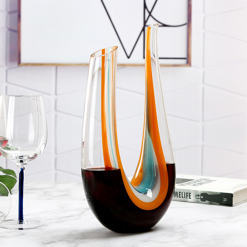 Glazed Red Wine Decanter Personality Creative handmade Wine Distributor Crystal Glass Home U Type Swan Pot