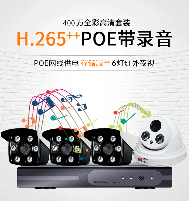 National Standard Poe Kits Surveillance Photographic Lens H 265 Supermarket Factory Internet Camera Suite Home Outdoor Night Vision