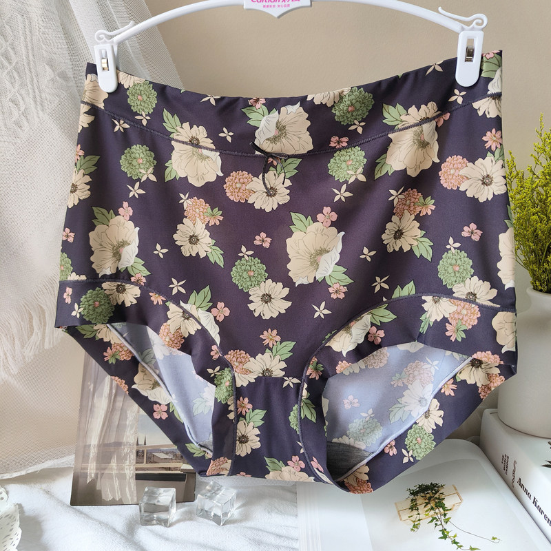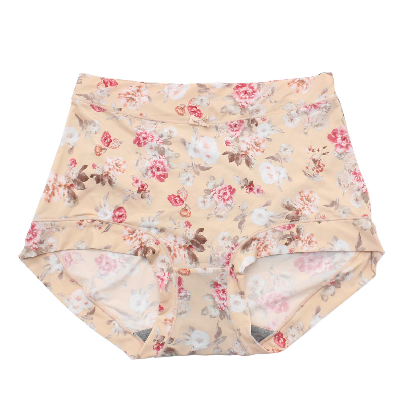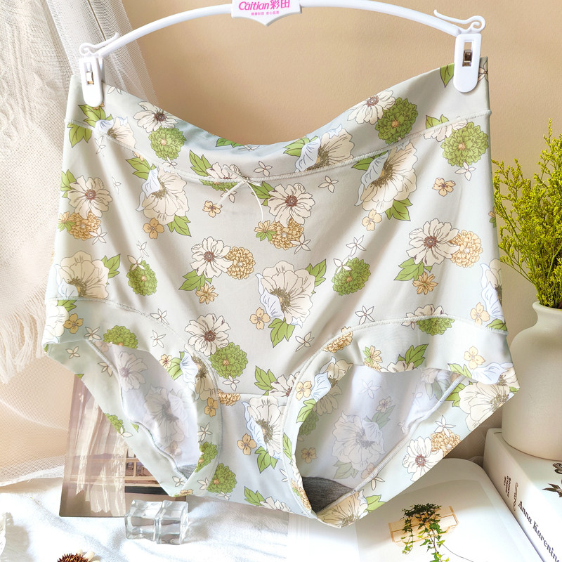 Graphene Caitian underwear women's printed ice silk high waist large size plus fat extra large fat mother 150-180 catties
