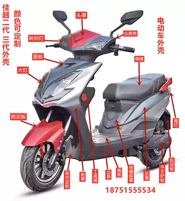 Front panel Hood Instrument shell Living room light Direction light Front mud plate Front inner mud plate Toolbox Pedal Front section Pedal cover Pedal Rear section Edge strip Seat barrel Front cover Rear circumference Decorative plate Rear circumference Connecting seat barrel Rear mud plate Bottom bracket Taillight