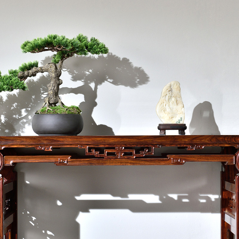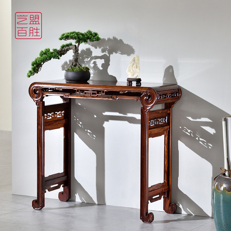 Yimeng Baisheng slightly concave yellow sandalwood volume book case Ming-style mahogany carved piano table red acid branch porch table side table furniture
