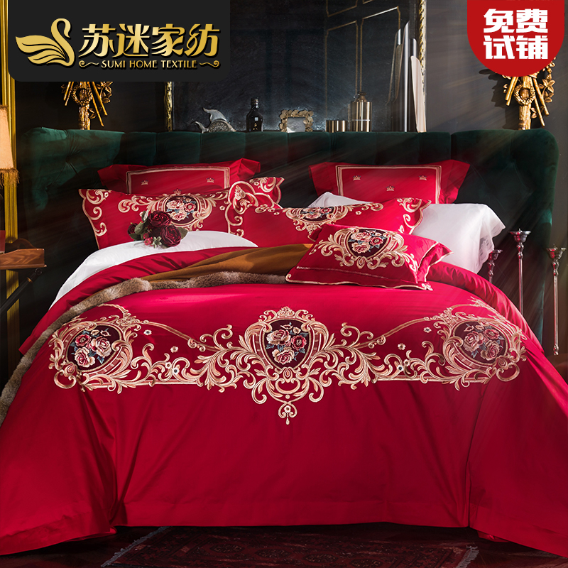 Su fan Home Textile Fall New Chinese Ancient Wind Reworked Embroidery Bed bedding 80 long suede cotton All cotton Four sets