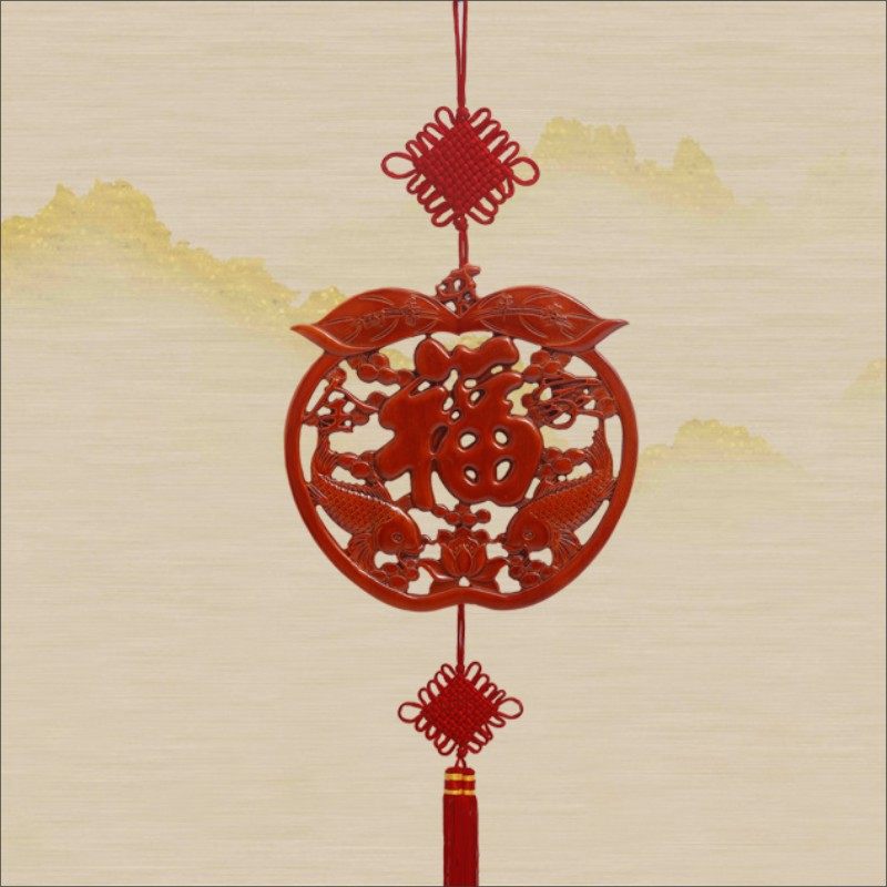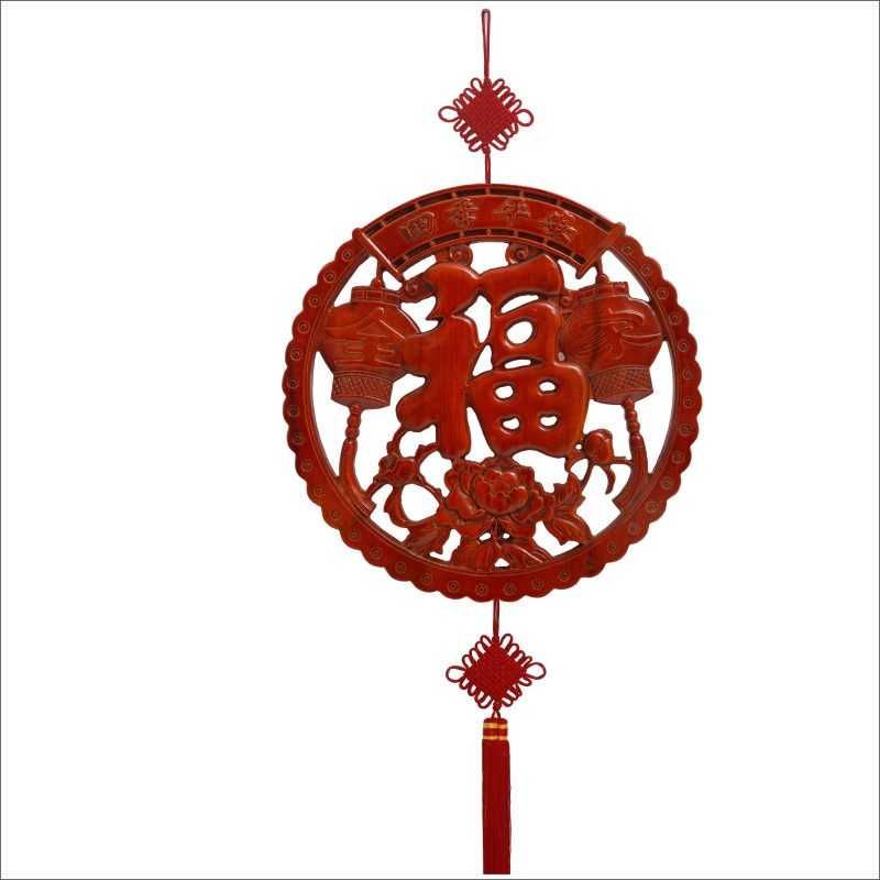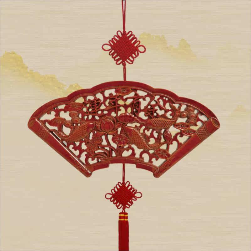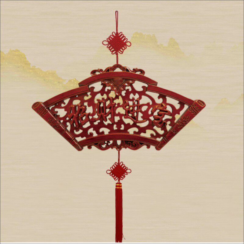 Dongyangxiang Zhangmu solid wood circular sector Chinese imitation antique living room book room bedroom craft gift hem decorated with Chinese knot decoration