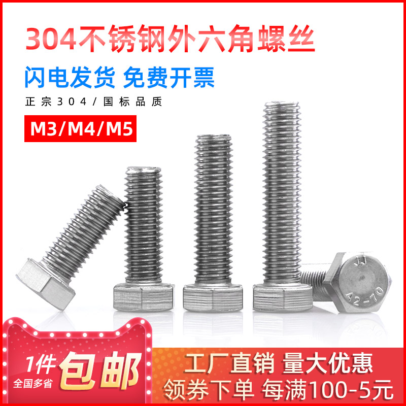 304 stainless steel outer hexagonal screw outer hexagonal bolt hexagonal bolt screw M3 M4 M5*20 3540 50
