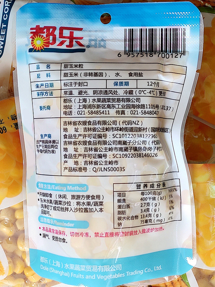 Dole Sweet Corn Kernels 10 bags open bag Ready-to-eat baby food Dole non-genetically modified fruit sweet corn