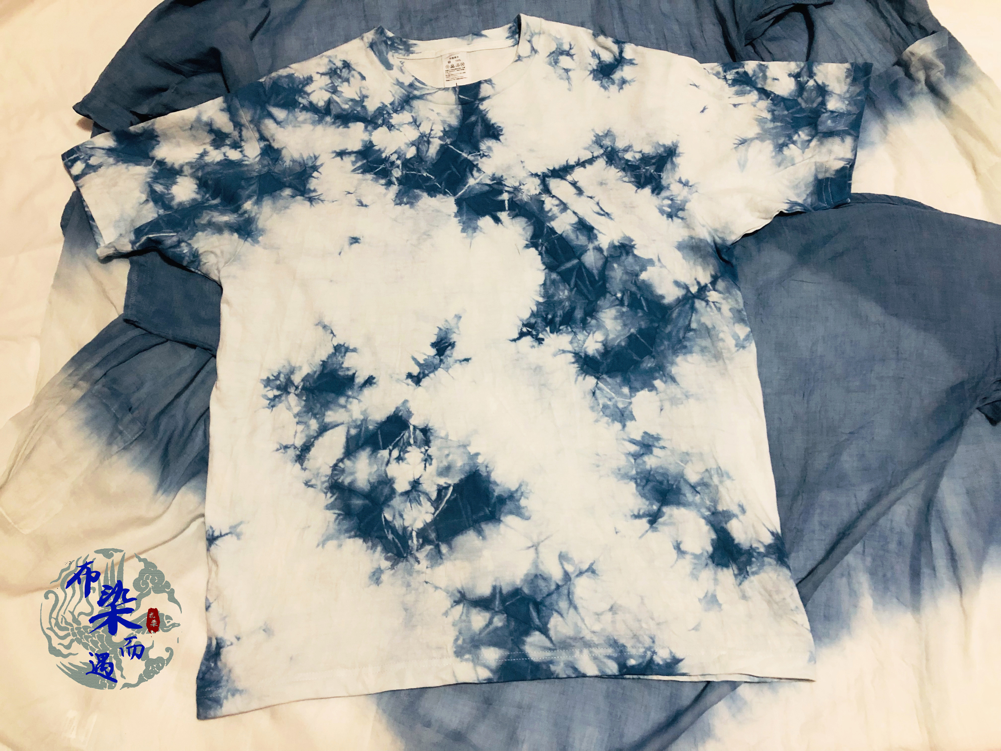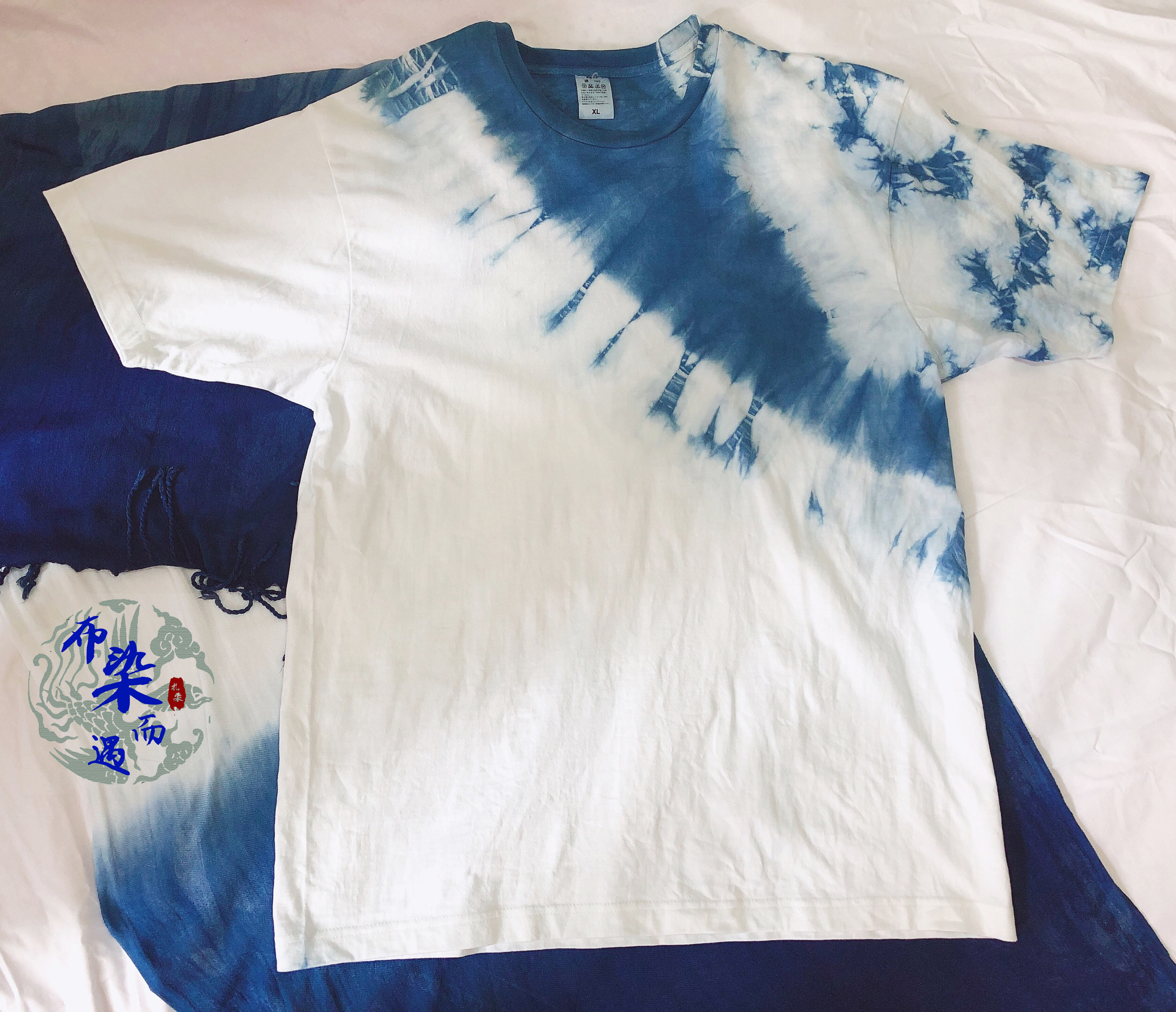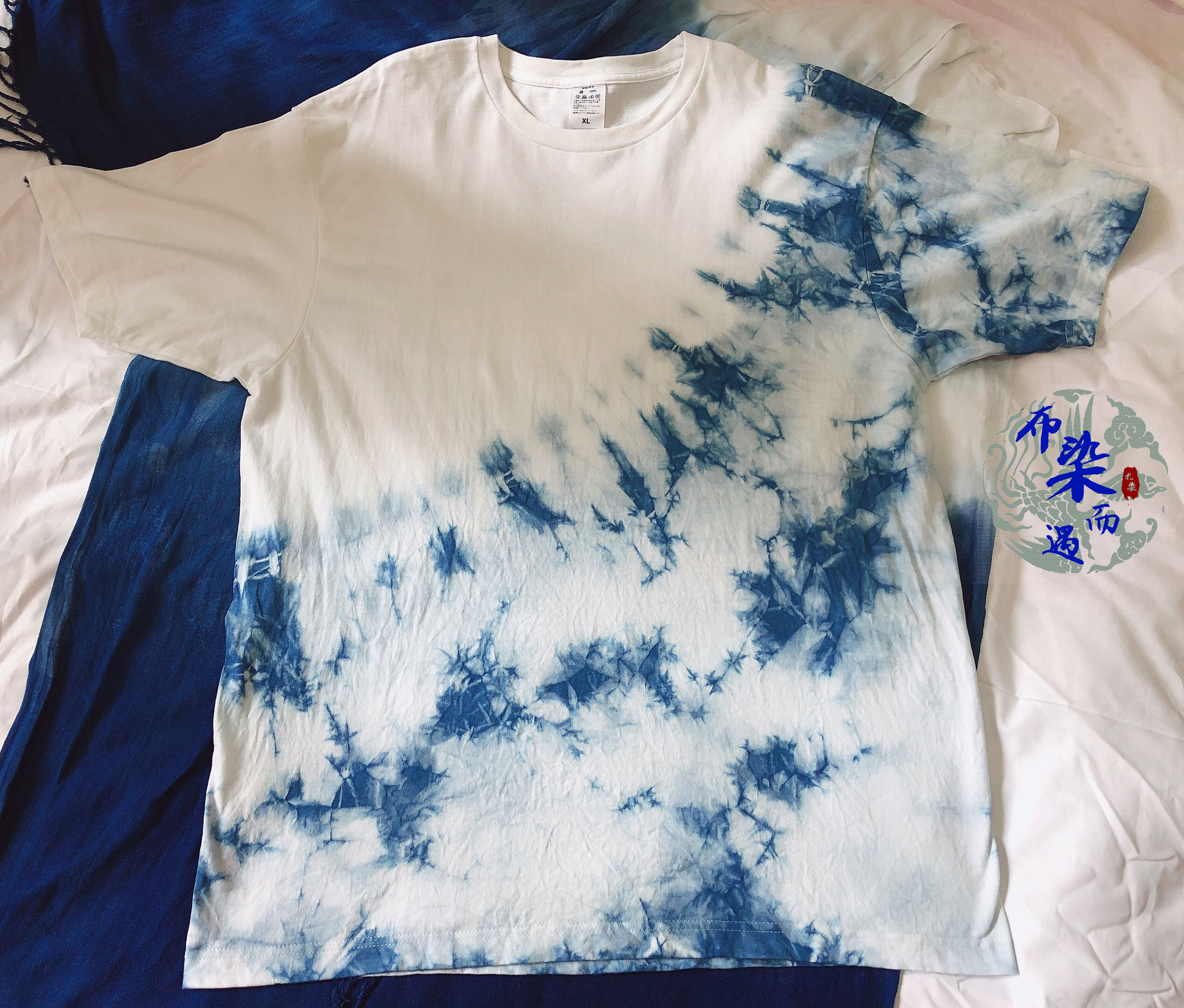 The new vintage Ami Katsu handmade blue dye grass and wood tie-dye T-shirt cotton grass wood dye summer men's and women's short sleeves