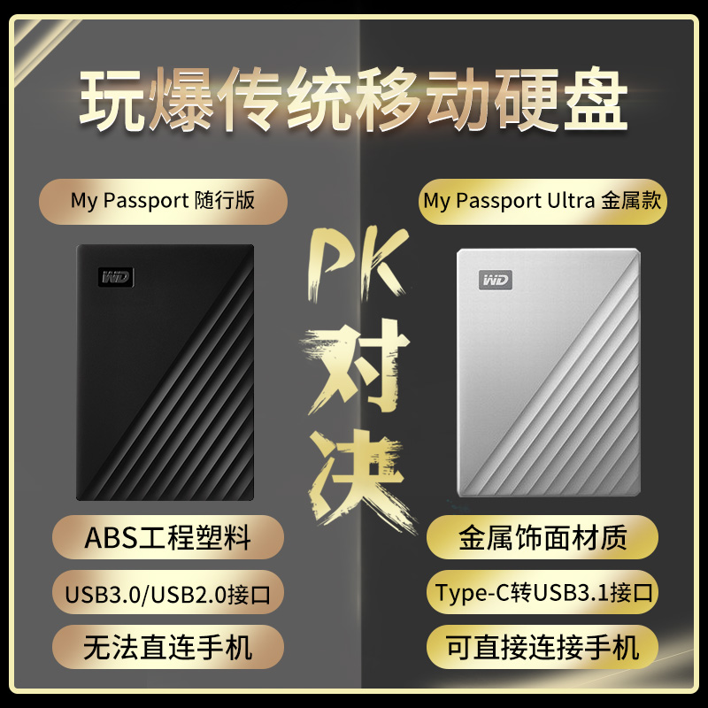 (Pre-sale 50 yuan drop) Western Data (WD) 4TB My Passport Ultra High Speed TypeC Portable Hard Drive 4t Encrypted USB3 1