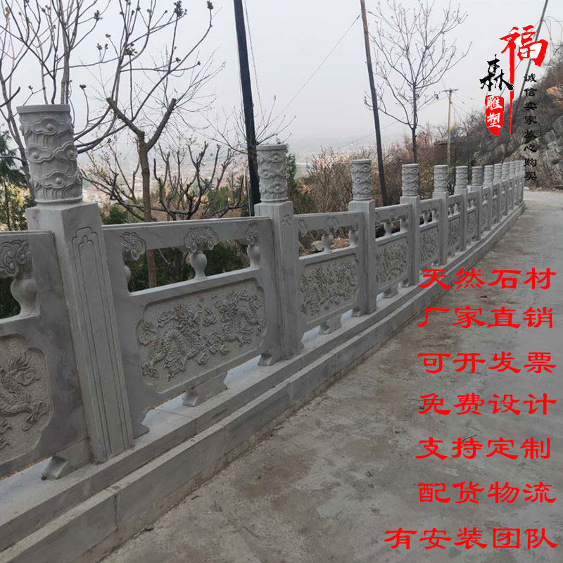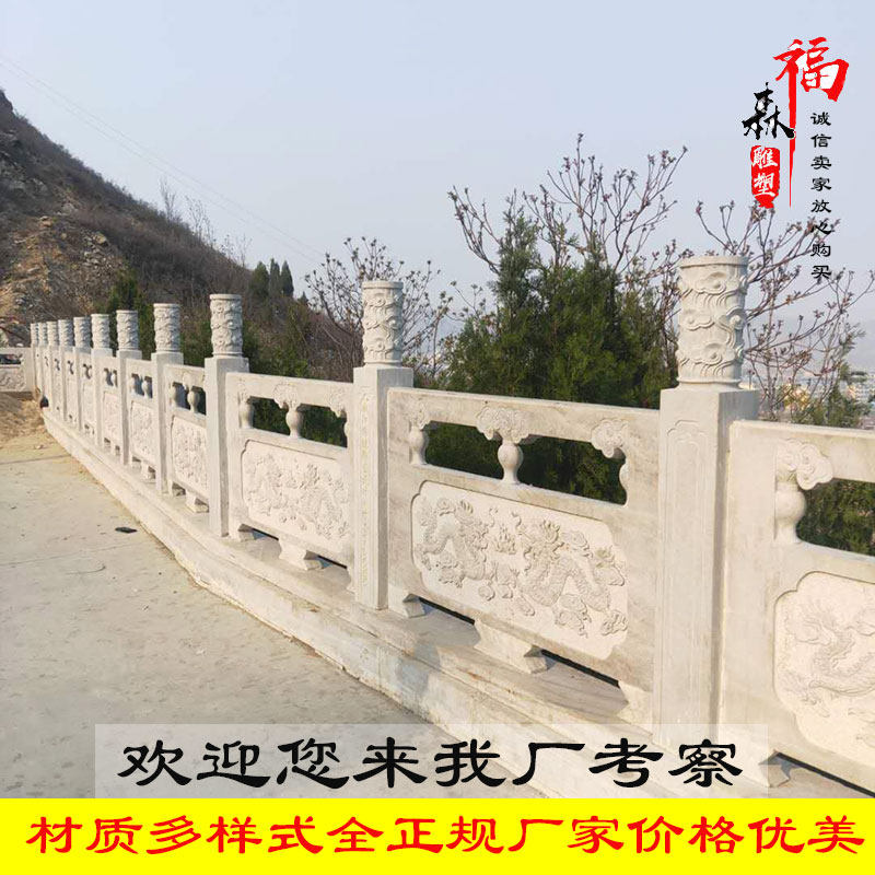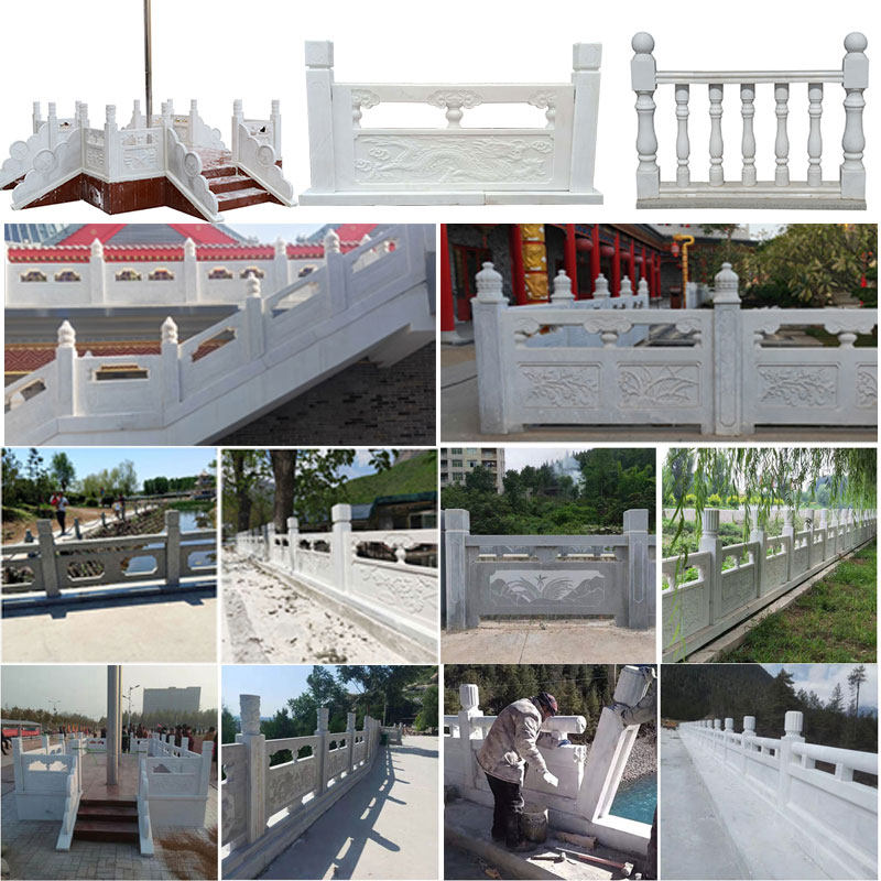 Stone Carving Railing Han White Jade Fence Villa board Stone column landscaped stone arch bridge marble living-flag bench railing Customized