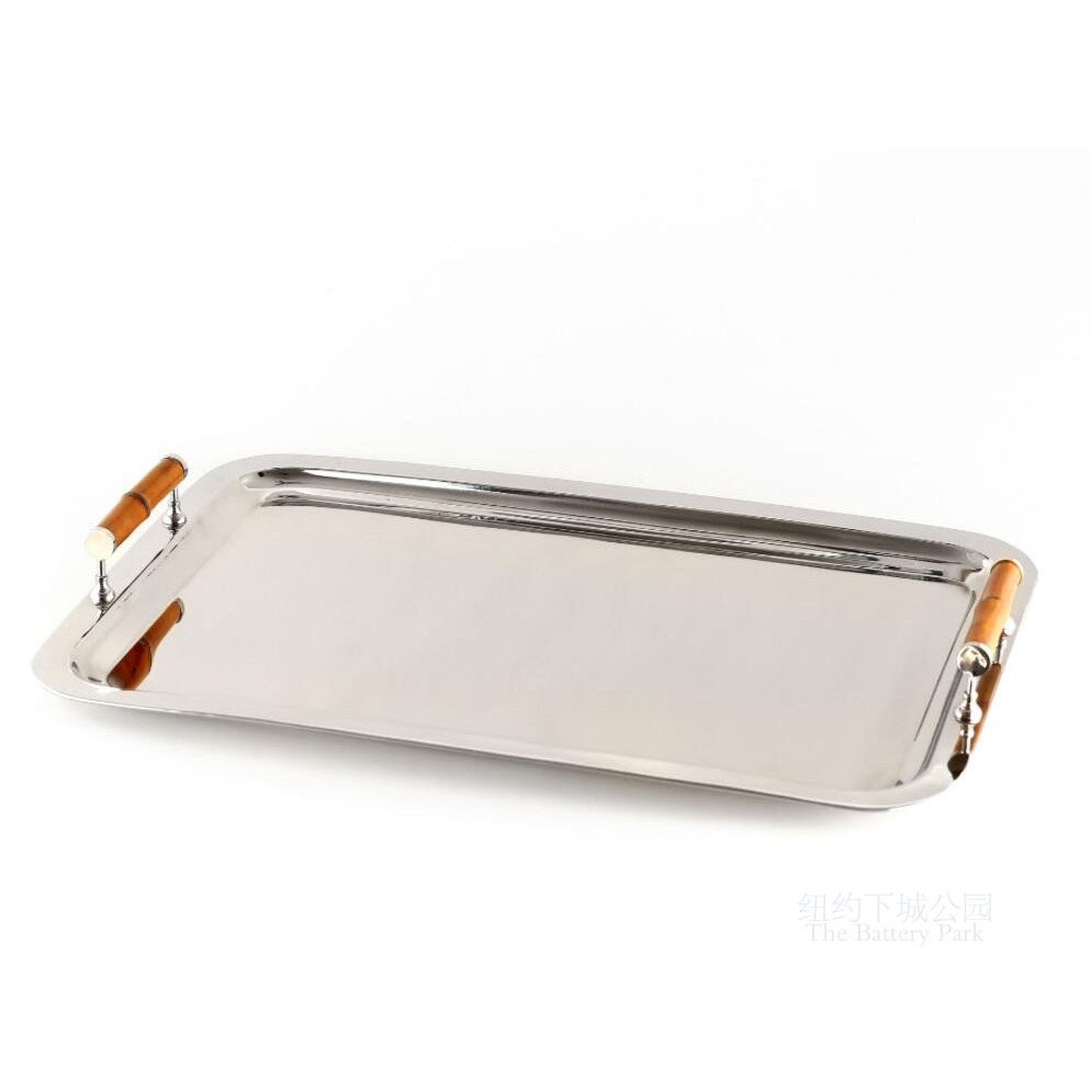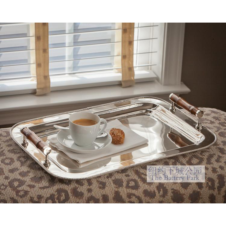 New York City Park imported Western-style bright silver exquisite copper nickel-plated bamboo handle tray teapot three-piece set