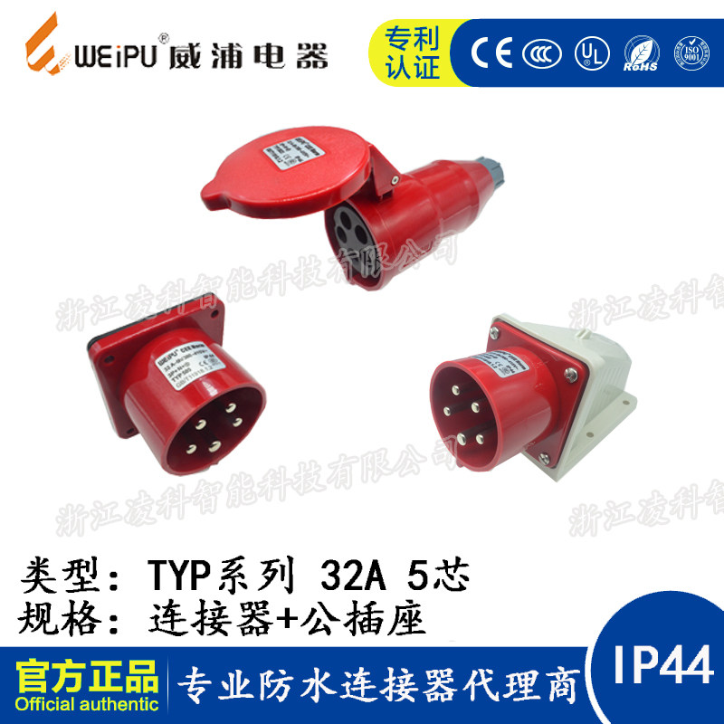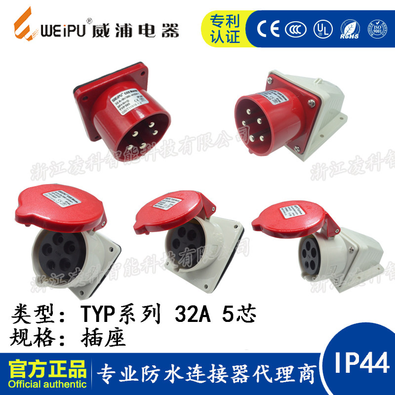 Weipu 32A 5 Core Industrial Plug Socket Connector TYP285 2823 Ming Concealed Male Socket IP44