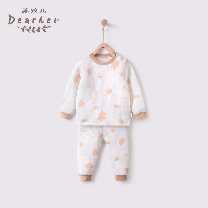 Tichild baby warm autumn and winter lingerie suit pure cotton shoulder opening male and female baby clips cotton children clothes 2 pieces