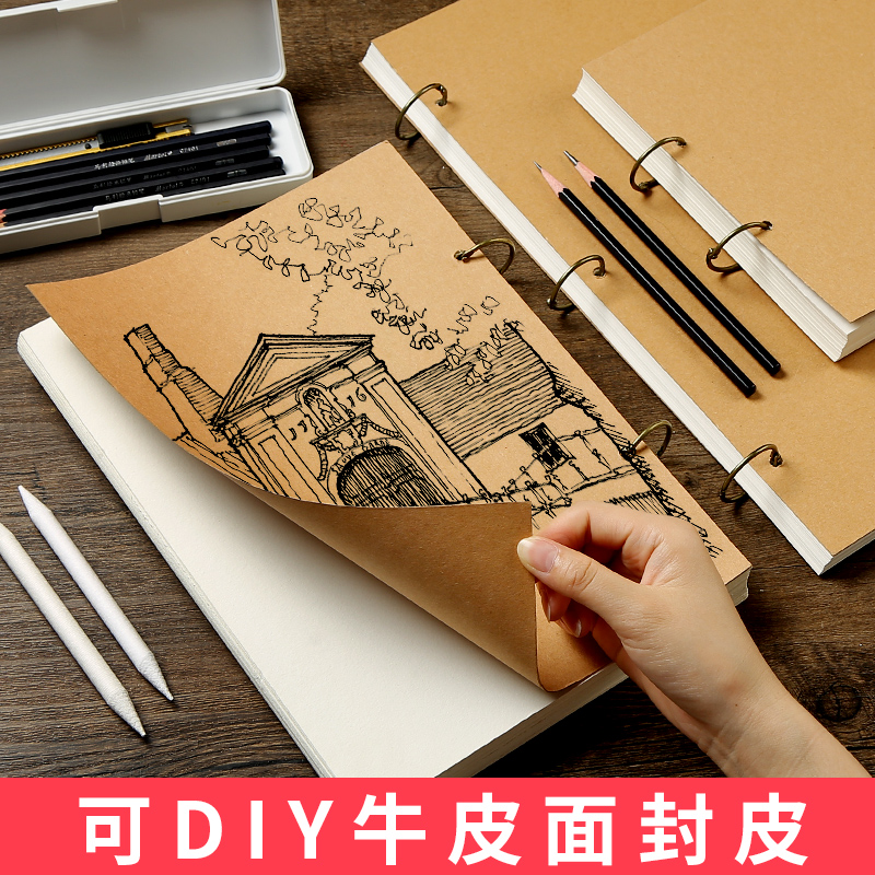 Berglino thickened sketchbook Sketchbook loose-leaf detachable hand-painted retro Chinese style student with 8k large sketchbook art blank A4 Kraft paper picture book Children's picture book