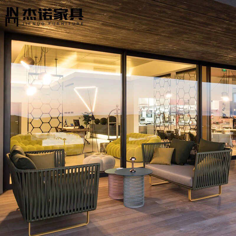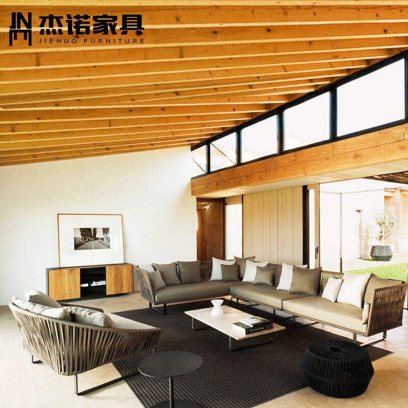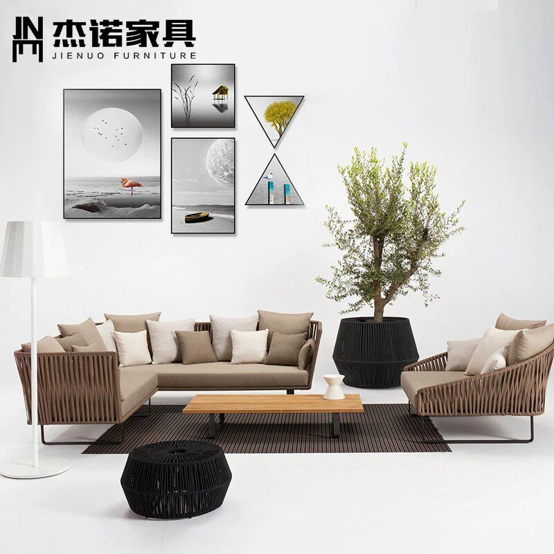 Nordic outdoor furniture combination outdoor balcony open-air garden courtyard model room leisure anti-rattan woven rattan sofa
