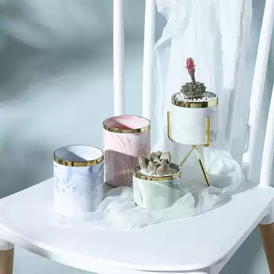 Fleshy flowerpot pink marbled white porcelain meat plant small flowerpot cute personality simple ceramic flowerpot